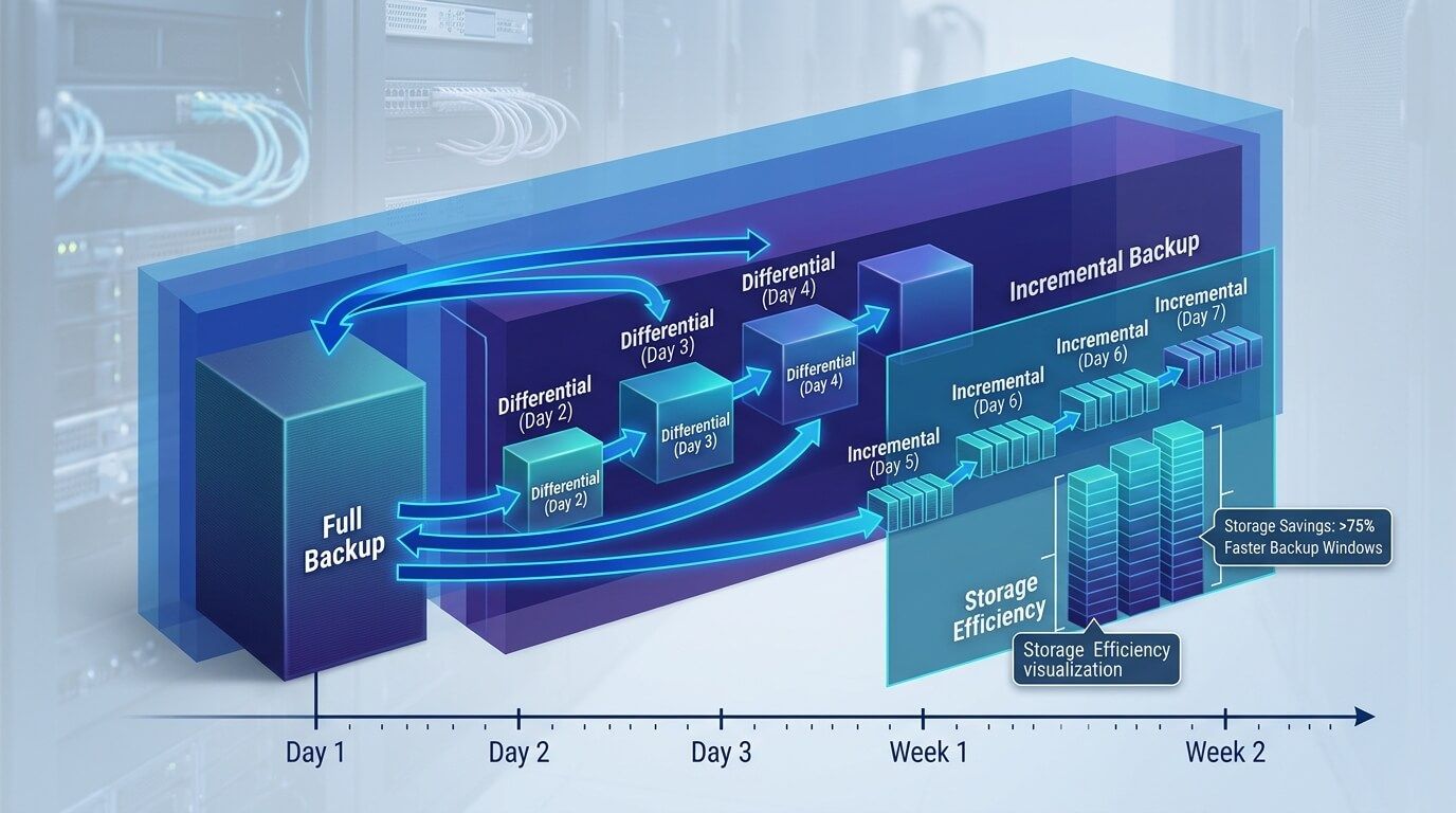 RPO/RTO: установите цели непрерывности (Recovery Point Objective и Recovery Time Objective) для каждой критичной системы. От этого будет зависеть частота и приоритет бэкапирования. Если допустима потеря только часа данных, бэкапы надо делать несколько раз в день или использовать CDP; если можно потерять сутки – достаточно ежедневного инкрементального.