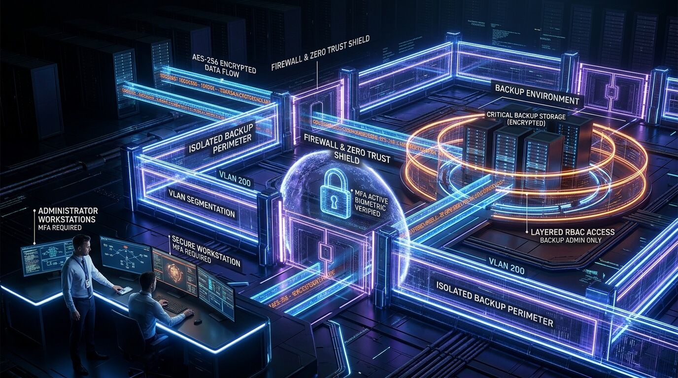 Шифрование и контроль доступа обязательны. Данные должны быть зашифрованы at rest и in transit. При передаче (VPN, SFTP) – SSL/TLS или IPSec, при хранении – AES-256 или сильный алгоритм. Ключи шифрования должны храниться отдельно от бэкап-хранилища. RBAC и MFA обеспечивают, чтобы только уполномоченные лица могли инициализировать или удалять бэкап: необходимо отдельное identity-хранилище для backup-систем. Как отмечают эксперты: «Бэкапы должны быть зашифрованы и at rest, и in transit. Role-based access control, отдельные креденшалы, MFA – всё обязательно».