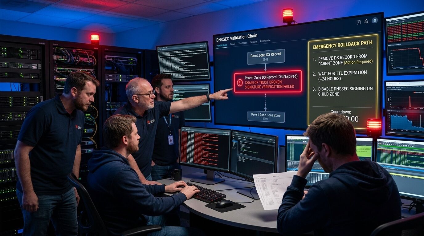 DNSSEC стоит включать не как “галочку безопасности”, а как управляемое изменение в цепочке доверия DNS. Практически все серьёзные инциденты при внедрении сводятся к одному и тому же: в родительской зоне остаётся старый или неверный DS, а дочерняя зона уже подписывается другим ключом, другим провайдером или вообще больше не подписывается. Для валидирующих резолверов это заканчивается SERVFAIL, хотя “обычные” невалидирующие проверки могут продолжать показывать, что домен якобы работает.