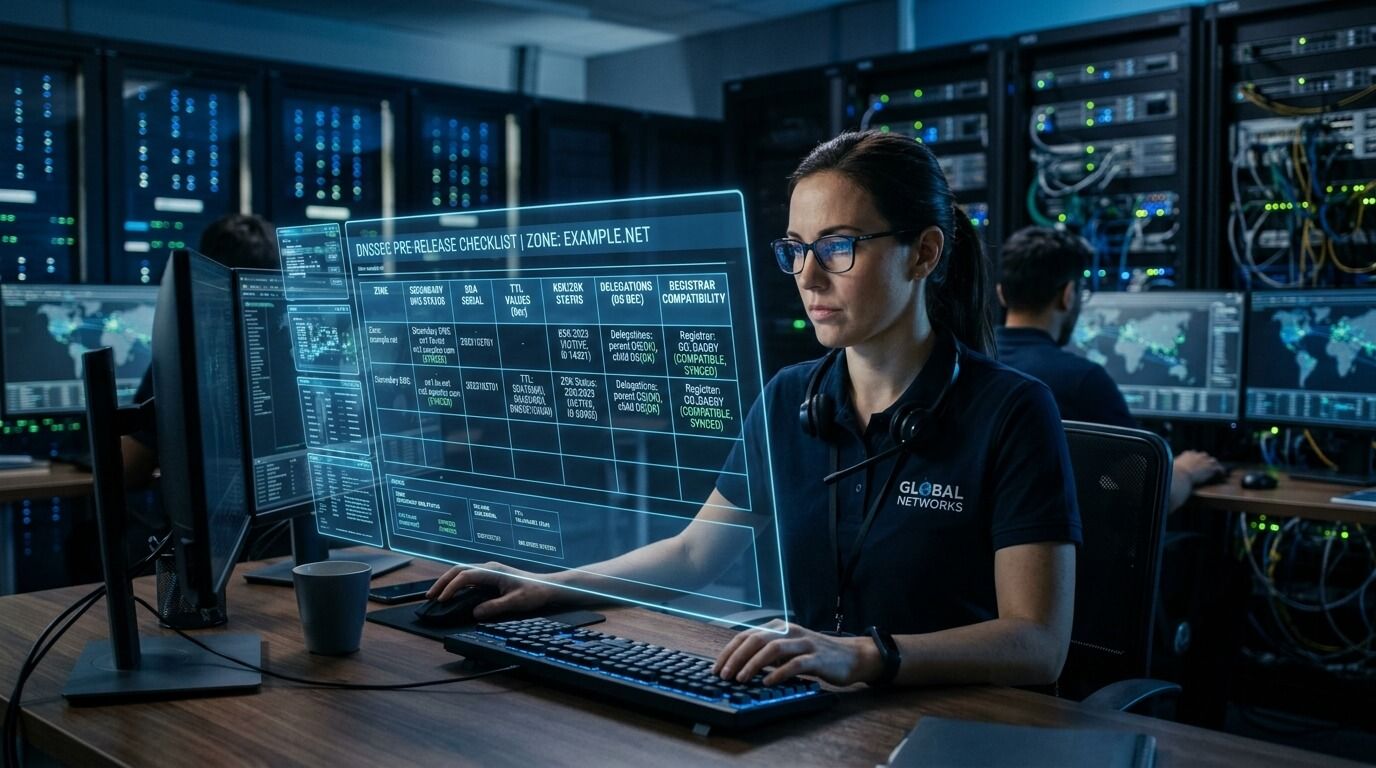 Перед включением DNSSEC нужен не “мини-аудит”, а короткий предрелизный change review зоны. Надо проверить: нет ли устаревших glue/child delegation, сходятся ли serial/AXFR/IXFR на вторичных серверах, не зависит ли зона от провайдера, который при миграции меняет format/signing policy, умеет ли регистратор публиковать DS именно для вашего TLD и выбранного алгоритма, и есть ли у signer’а права на запись/обновление зоны. Для BIND это буквально условие работы dnssec-policy: зоне нужны dynamic DNS или inline-signing, а сам named должен иметь write access к зоне.