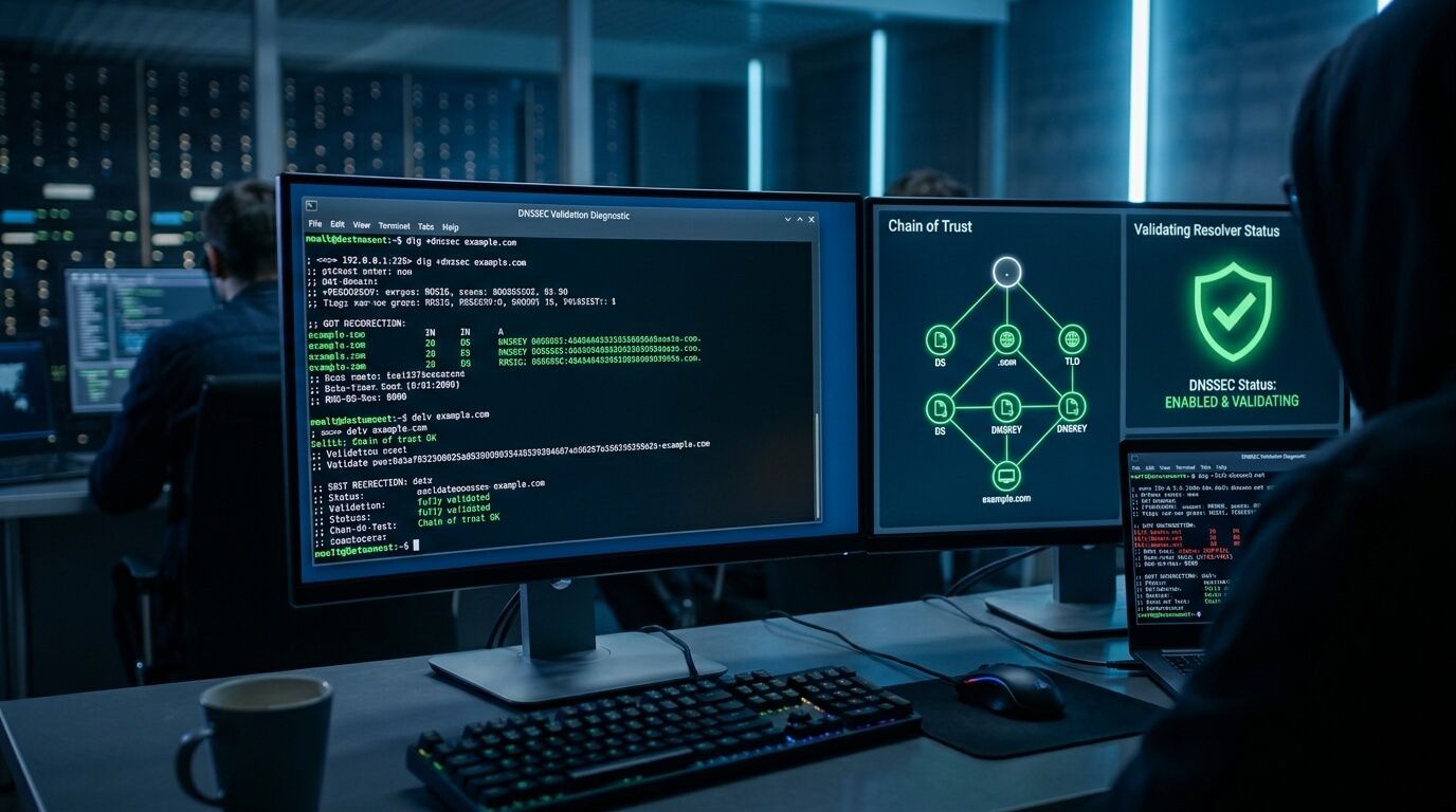 Проверять DNSSEC нужно в двух точках: у авторитативного сервера и у валидирующего recursive resolver. На авторитативной стороне вы подтверждаете, что зона реально публикует DNSKEY, RRSIG и корректные отрицательные ответы. На recursive-стороне вы убеждаетесь, что цепочка root → TLD → parent DS → child DNSKEY проходит валидацию. Без второй части вы легко пропустите broken DS.