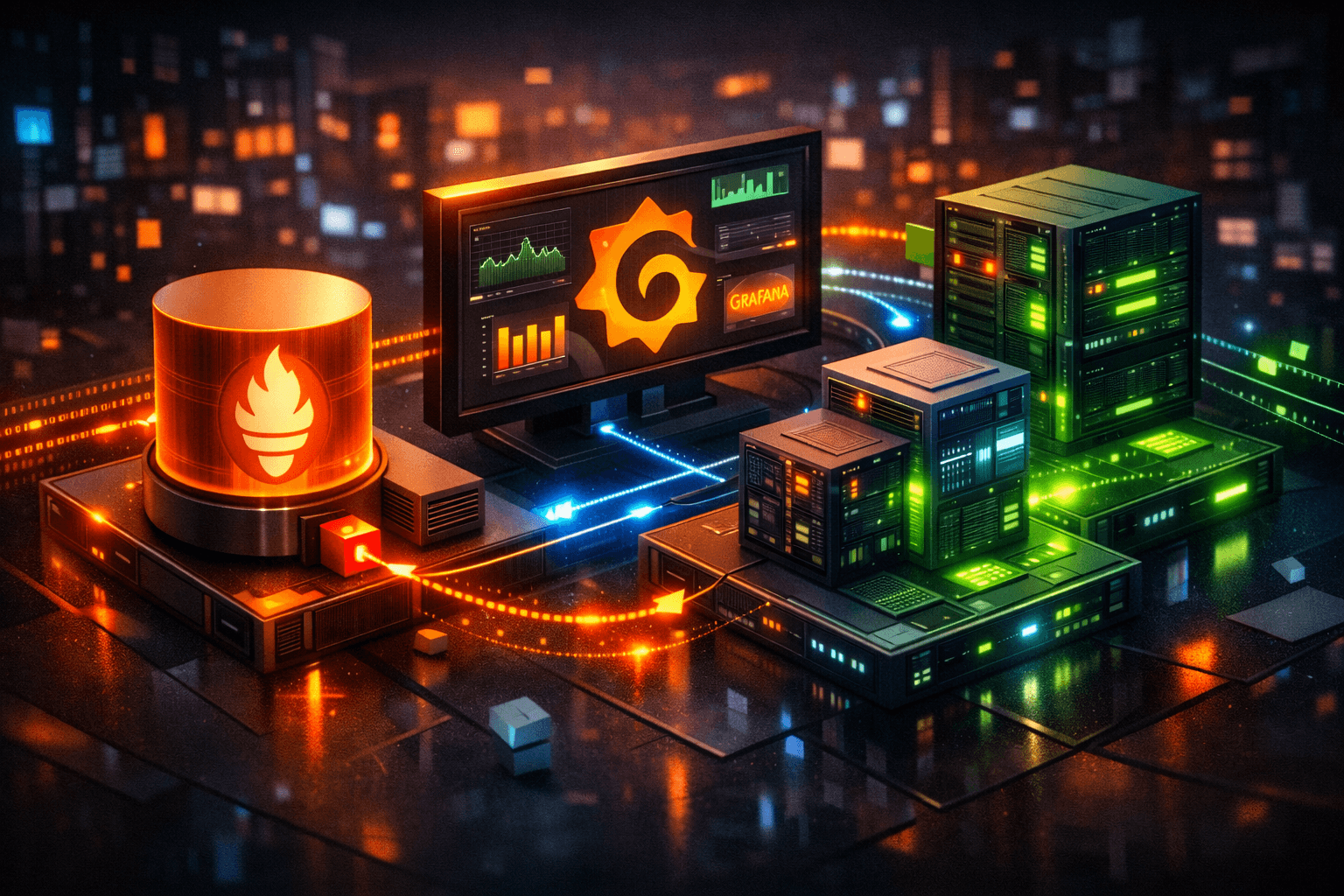 Prometheus — система сбора и хранения метрик. Он скрейпит (опрашивает) endpoints ваших сервисов, сохраняет time-series данные и выполняет alerting.