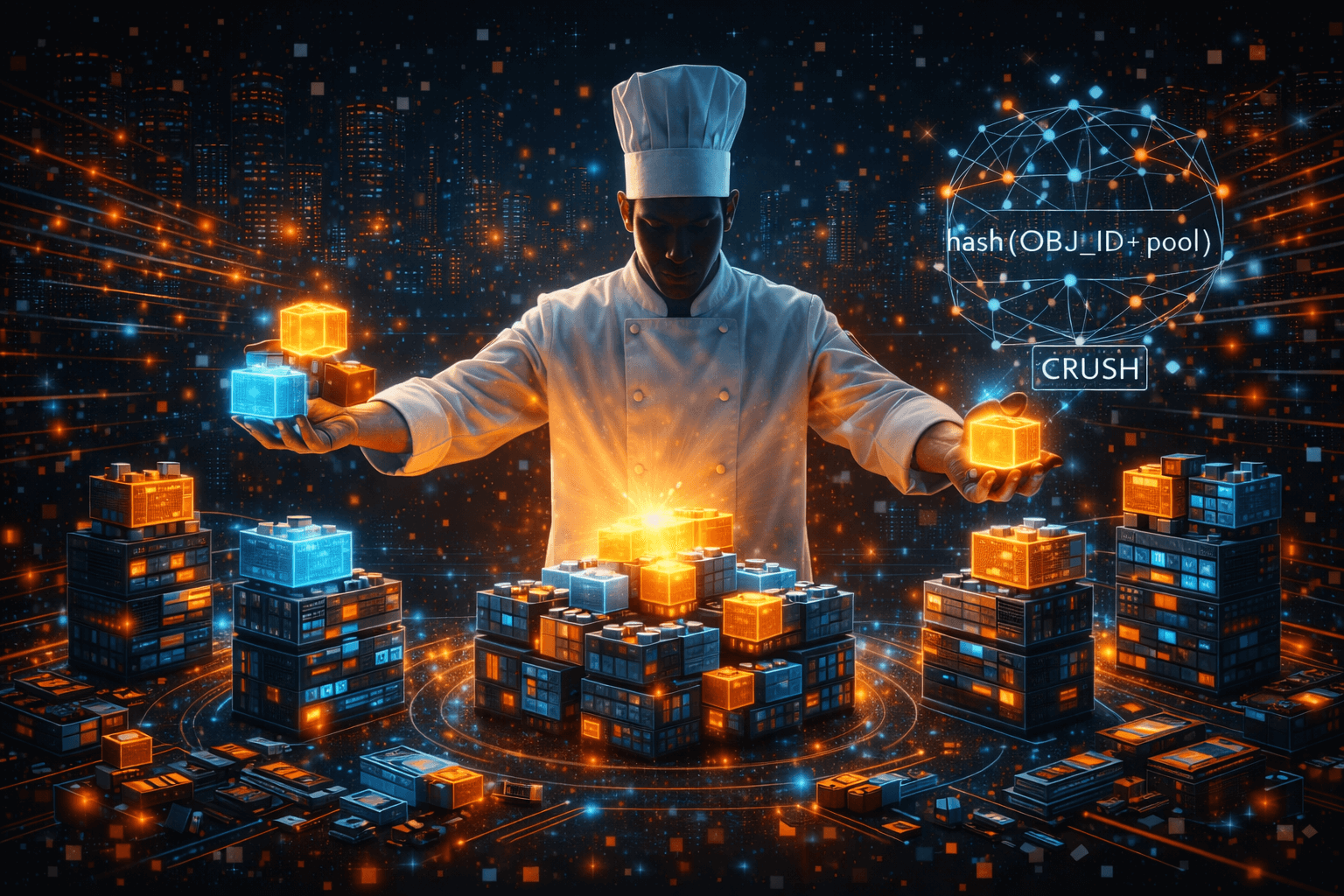 Главная сила Ceph – масштабируемость и отказоустойчивость по умолчанию. Данные в кластере Ceph разбиваются на объекты и автоматически распределяются по серверам с помощью алгоритма CRUSH (он как шеф-повар, который раздаёт «куски» данных на хранение по определённому рецепту). Этот алгоритм позволяет обойтись без центрального узла учёта данных: нет единой таблицы размещения, вместо неё – математическая формула, вычисляющая, где лежит объект. Что это даёт? Во-первых, нет единой точки отказа – даже если один сервер выйдет из строя, кластер знает, как восстановить утраченные копии данных на других узлах. Во-вторых, можно добавлять новые серверы (узлы) и диски, и Ceph автоматически включит их в работу, перераспределив часть объектов – кластер растёт без простоя и миграций. Хотите хранить петабайты данных так же, как это делают крупнейшие облачные провайдеры? Ceph справится с этой задачей.