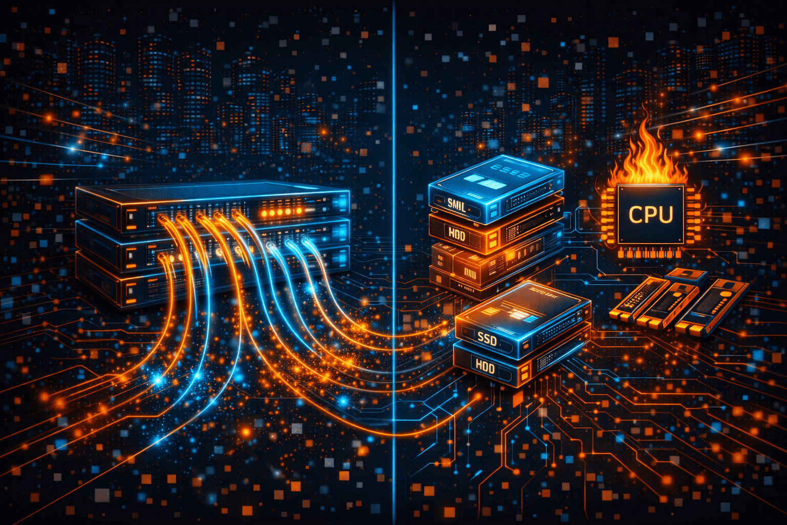Диски и серверы – второй фундамент. SDS прекрасно работает на коммодити-оборудовании, но это не значит, что годятся любые списанные машины. Практика показывает, что чрезмерная экономия на железе может выйти боком: лучше сразу заложить серверы с запасом по CPU и RAM (службы кластера тоже потребляют ресурсы, особенно Ceph – он любит оперативную память для кэширования). Диски стоит выбирать надёжные, серверной серии – ведь они будут непрерывно нагружены. Для ускорения можно комбинировать SSD и HDD: например, в Ceph журналы (WAL/DB) выносить на NVMe-SSD, а сами данные хранить на ёмких HDD; либо использовать SSD-пулы для горячих данных и SATA-диски для холодных архивов. GlusterFS также позволяет применять SSD как кэш. Главное – следить за балансом: не имеет смысла ставить ультрабыстрые NVMe, если сеть между узлами узкая, или наоборот, вкладываться в 100-гигабитный Ethernet, храня всё на медленных 5400 RPM HDD. Планируйте конфигурацию сбалансировано под свои задачи.