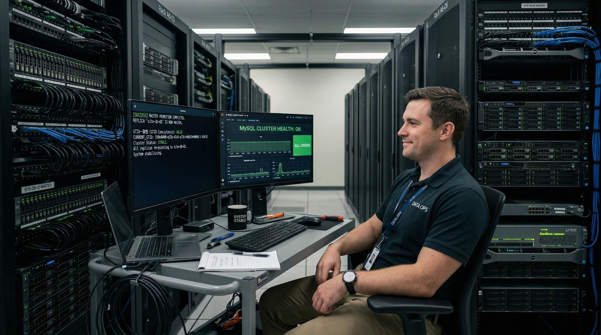 CHANGE MASTER TO ... MASTER_AUTO_POSITION=1вместо подбора binlog‑координат. - Меньше ручных ошибок: меньше «человеческого фактора» на самых неприятных шагах. (Это не отменяет требований к дисциплине: fencing, read‑only, проверка на errant транзакции.)