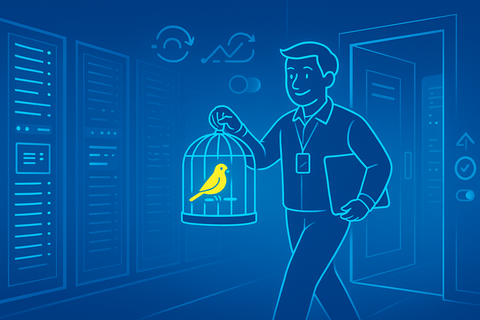 Если Blue-Green — это про параллельные миры для старой и новой версии, то канареечный релиз — про постепенность и осторожность. Название навеяно практикой шахтёров, которые брали с собой в шахту канареек: если воздух становился опасным, маленькая птичка чувствовала это первой. По аналогии, канареечный релиз сначала «выпускает» новую версию для небольшой доли пользователей, словно отправляя канарейку в шахту, и внимательно следит, нет ли проблем.